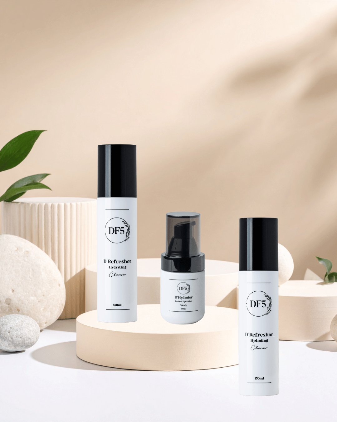 The DF5 Healthy Skin Kit focuses on the most critical step of any skincare routine: a perfectly balanced cleanse. By providing a double supply of our D’Refreshor Hydrating Cleanser alongside our hero D’Hydrator Serum, this kit ensures your skin is never stripped of its natural oils. It is the ideal system for those who prioritize a clean, fresh canvas and deep, lasting moisture.